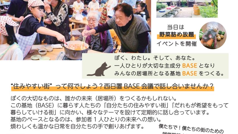 【参加者募集】地域の皆さまと一緒に創る新しい居場所づくり「西日置BASE会議」のお知らせ